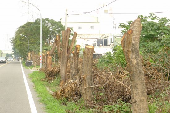樹木又遭亂砍,社大環境行動小組研究員晁瑞光卅日發現,永康區鹽水溪堤防便道時路旁約四十餘棵路樹遭人砍斷。經查,係台電為保護路旁電桿供電線路安全,才加以「砍樹」。諷刺的是,這批路樹,當時係地方向行政院環保署爭取空氣污染防制基金經費所種,如今遭人砍斷,讓人痛心。