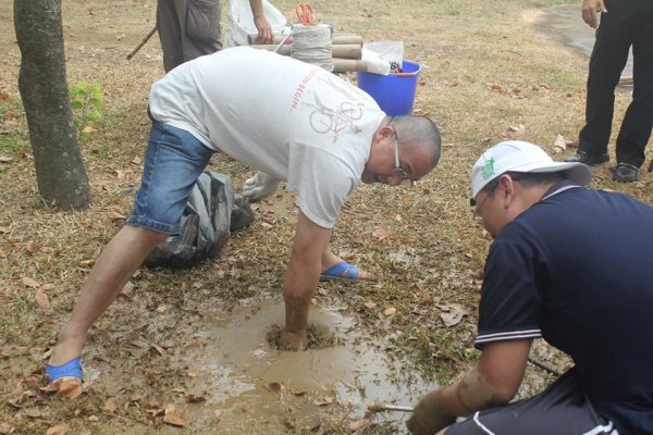 我都叫他趙老大... 腳穿藍白拖,頭剃大光頭,每次都是白T恤、五分褲,一來話不多就是作事。 問他住這附近嗎?他搖搖頭,靦腆的笑說:我是從永康過來,來這邊餵松鼠... 本來只是好奇我們在作什麼,慢慢主動幫忙搬培養土、澆水、打洞. 耀慶也不囉嗦,把水刀塞他手裡,幾次操作也作出興趣,現已成為每週主動來報到的樹公民志工,而且永遠是身上泥水最多的志工之一。 認真的趙老大,就是樹公民最棒的寫照!