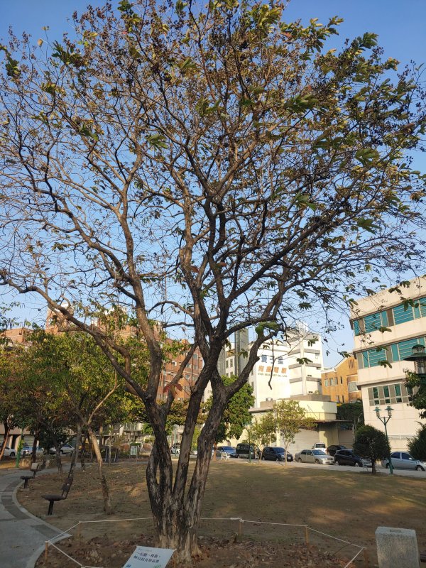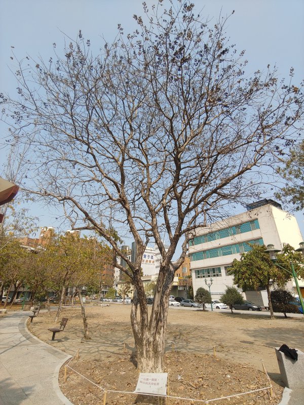 2023/0201更新拍攝,大花紫薇呈現少量葉子,落種子狀態,底下有自己掉落的枯枝放置在地上沒有被掃走,是很好的狀態,就讓這枯枝現地分解。