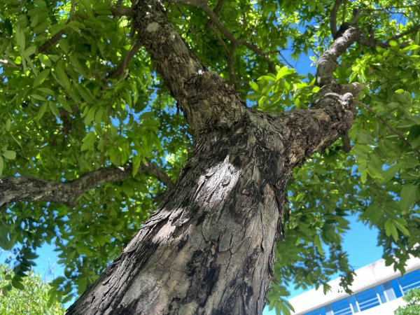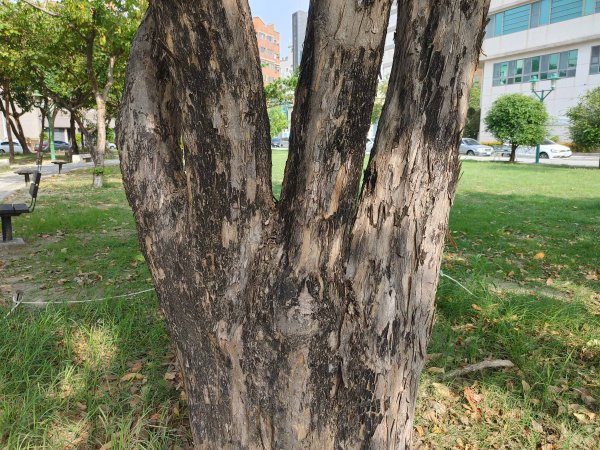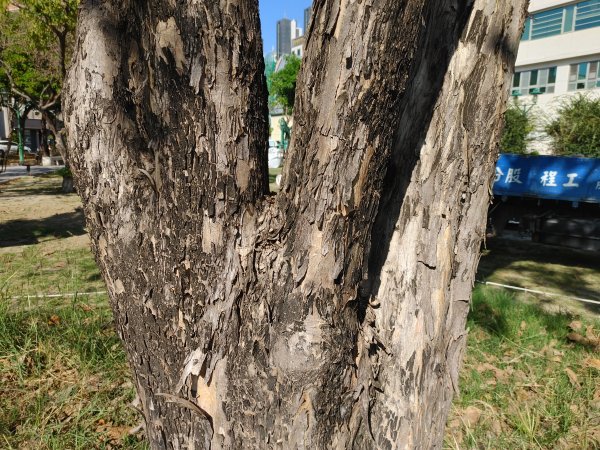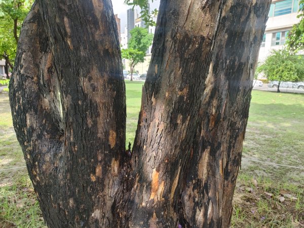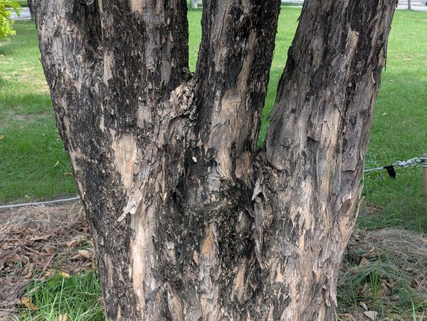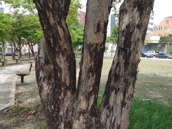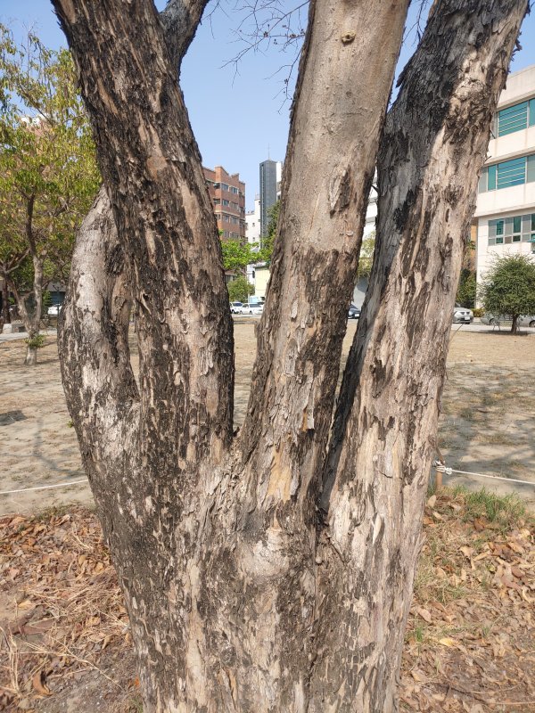2023/0821 更新,大花紫薇茂密葉量,踩在裡面落葉有彈性,樹皮有增生現象。