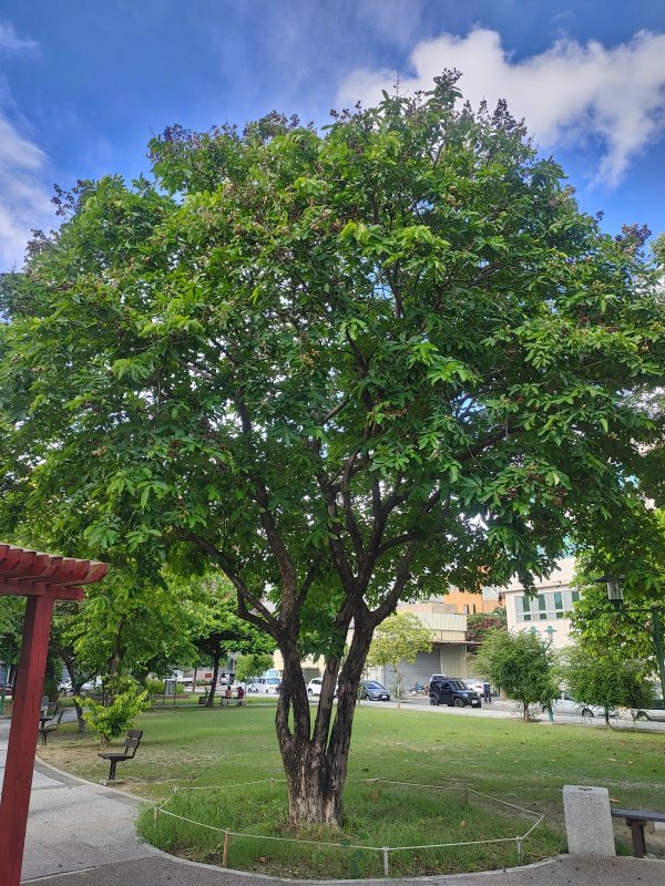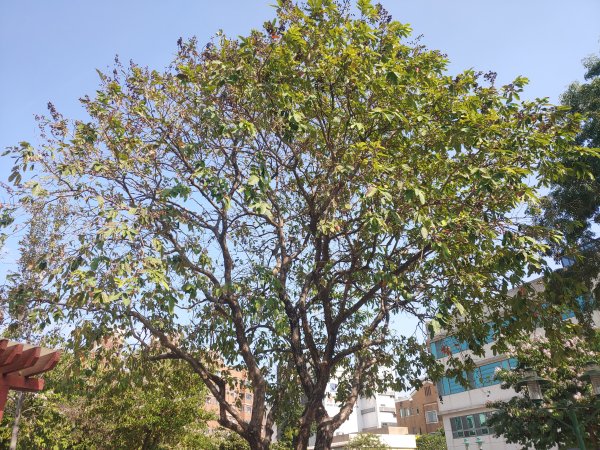 2024/0612 福安公園拍攝更新。花開到尾聲。樹梢上有花有果跟葉子三種齊開。