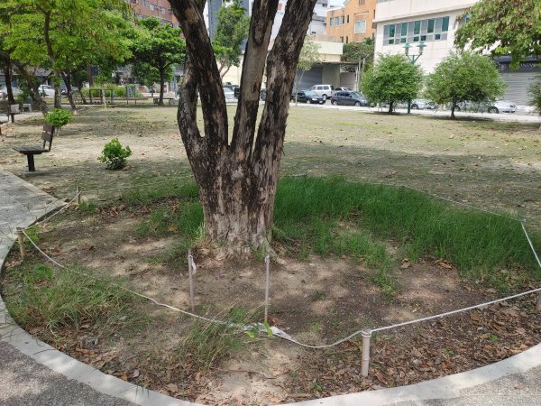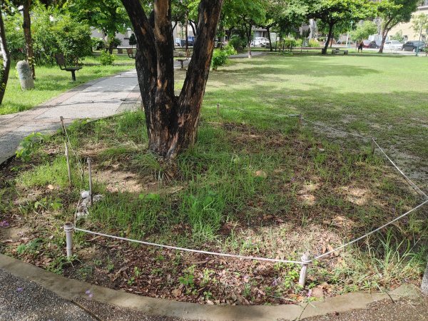 五月份正值大花紫薇的花開季節,葉量跟三月時期增加了很多。樹皮持續增生。拍攝時間正好是公園割草的時段,記錄到棲地裡面的草其實沒有被割除,有拍攝幾張有草跟沒有草的段落,可以給民眾觀察是否能慢慢接受這樣的做法。