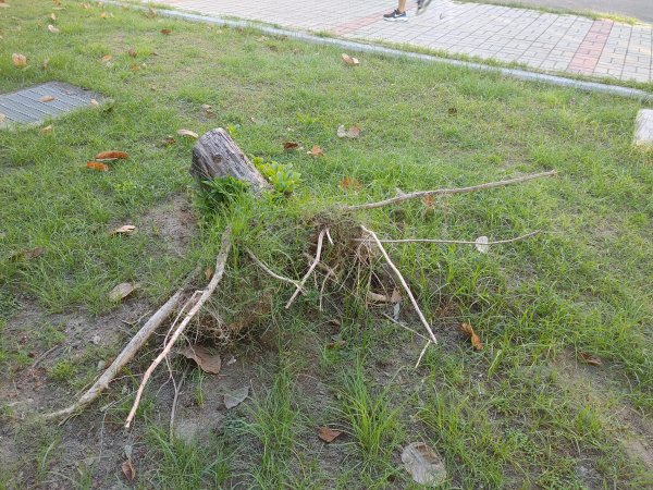 2024/1010 福安公園二期大花紫微竹子圍籬些微損壞。目前十月葉量茂密結子累累。一旁一樣的大花紫微觀察樹已經倒伏被鋸除,有拍攝根系的部位照片。