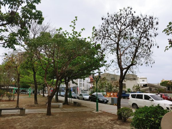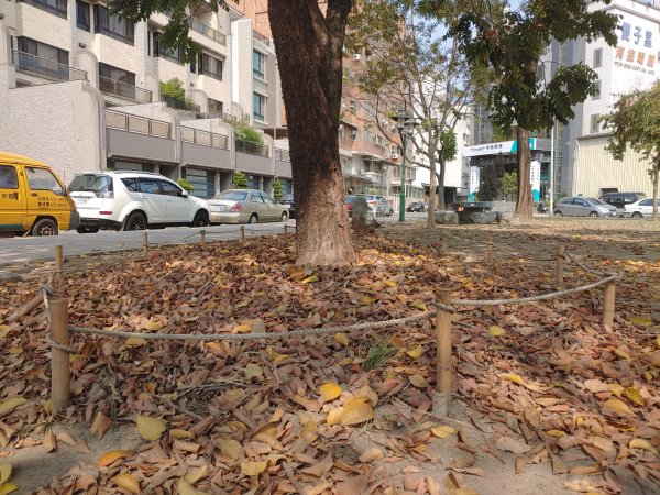 2023/0317觀察現況,火焰木跟茄冬葉量略少些。底下落葉量變多。竹子圍籬已經有損壞現象。