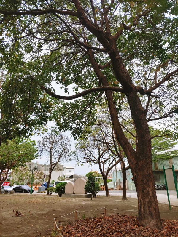 2024/0508 福安公園拍攝更新。火焰木正在花開之後的落葉現象,茄苳樹則已經有葉子。棲地底下有堆置的落下枝條。茄苳樹下有丟棄的石塊。兩棵樹皮持續增生現象。