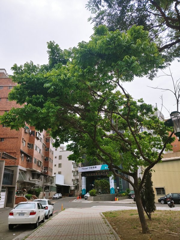 中嘉寬頻前面的這棵樹在幾個月前觀察是完全落葉,剩下很少在枝條末端的極少量葉子,跟附近居民聊是無患子,在這次觀察後,葉量爆發。