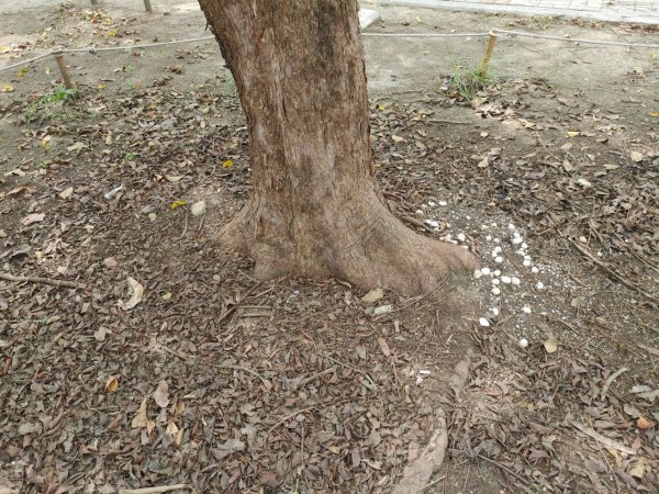 也觀察到護生圈裡面的棲地有被放置其他不明的土壤,要注意後續會發展成什麼。茄冬樹跟火焰木的樹皮都有很明顯的生長增胖的脫皮現象。