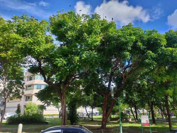 9/1 更新拍攝紀錄,火焰木修剪過後有新長出葉子,茄苳樹葉子數量維持很飽滿狀態。圍籬維持正常。
