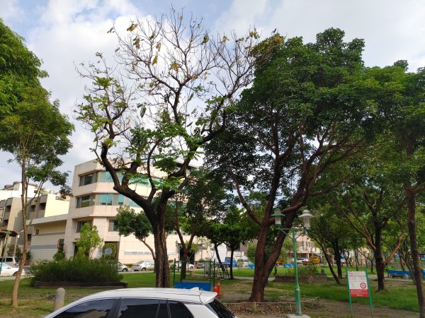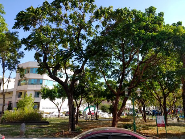 6/10 更新拍攝紀錄,火焰木有修剪,茄苳樹則沒有修剪痕跡。