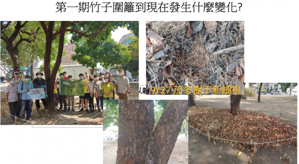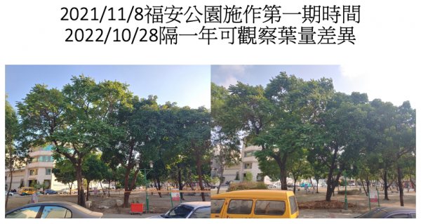 2022/12/9 新增:福安公園第一期施作後一年,葉子數量的差異性,還有底下的細根變化,觀察樹皮的增生脫皮現象。
