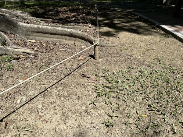 2023/0420新增觀察,榕樹葉量維持不變,底下落葉量有明顯變多一些,因久無下雨,土壤乾燥跟一旁水龍頭位置仍有綠草生長有明顯差異。