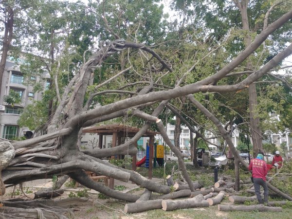 20233/1005 杜蘇芮颱風引響導致大榕樹的倒榻,北區公所發現後,立刻請人處理來鋸除。