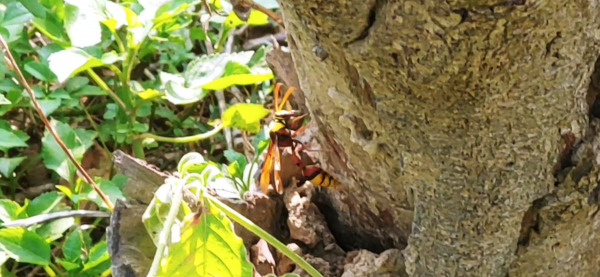 枯死枝條在地表會有專門處理木質素的白蟻,樹頭裡面會有喜歡食木頭的甲蟲來產卵,木頭被挖出多孔洞的方式,也有壁虎選擇產卵在這裡。觀察中最驚喜的是蜾蠃藉由吸些水龍頭的水,來到枯死樹頭的位置,用口中水份混合樹枯死的材料,抱在胸前飛到自由築巢的位置,養育未來的下一代。