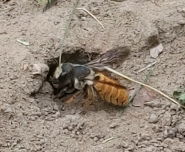 觀察時,就覺得比一般蜜蜂大了一些,但是特徵很相識,還沒看過切葉蜂住在土壤裡的。一開始也是猜測是土蜂。